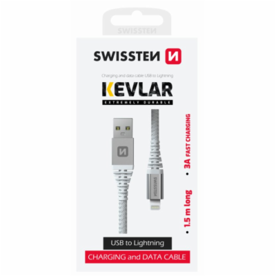 SWISSTEN KEVLAR USB na Lightning 1,5 m bílýExtrémně odolný nabíjecí a datový USB na Lightning kabel vyztužený kevlarovým vláknem podporuje kromě přenosu dat rychlostí 480 Mb/s také nabíjení proudem až 3 A. Flexibilní provedení odolné proti zamotání zajistí dlouhou životnost a předejde lámání kabelu.
